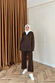 Eros Kapüşonlu Taşlı Triko Takım Kahverengi 25340-KAHVERENGI