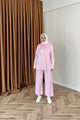 Eros Kapüşonlu Taşlı Triko Takım Pembe 25340-PEMBE