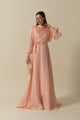 Göğüs Drapeli Abiye Pudra 3023-PUDRA