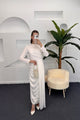 Göğüs Drapeli Saten Abiye Beyaz 3074-BEYAZ