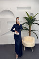 Göğüs Drapeli Saten Abiye Lacivert 3074-LACIVERT