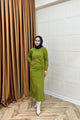 Yandan Büzgülü Triko Elbise Yağ Yeşili 24870-YAGYESILI