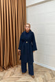 Yıldız Premium Kumaş Kuşaklı Kaban Lacivert 5515-LACIVERT